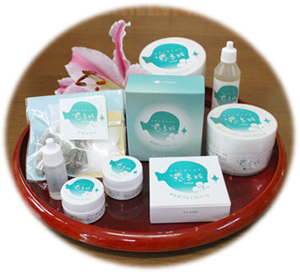 | ( エッセンシャルオイル、海洋深層水、海草フコイダン、シルクプロテイン ) |